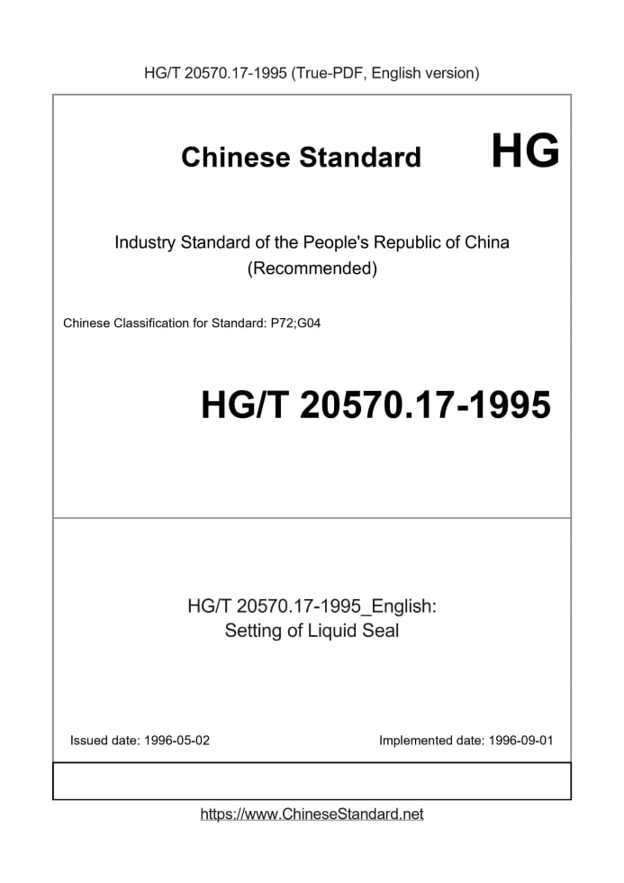Delivery: <= 3 days. True-PDF full-copy in English will be manually translated and delivered via email. HG/T 20570.17-1995: Setting of Liquid Seal