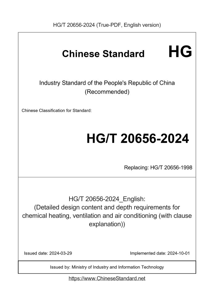 HG/T 20656-2024: (Detailed design content and depth requirements for chemical heating, ventilation and air conditioning (with clause explanation))