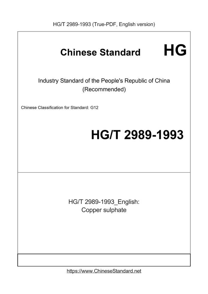 Delivery: <= 2 days. True-PDF full-copy in English will be manually translated and delivered via email. HG/T 2989-1993: Copper sulphate