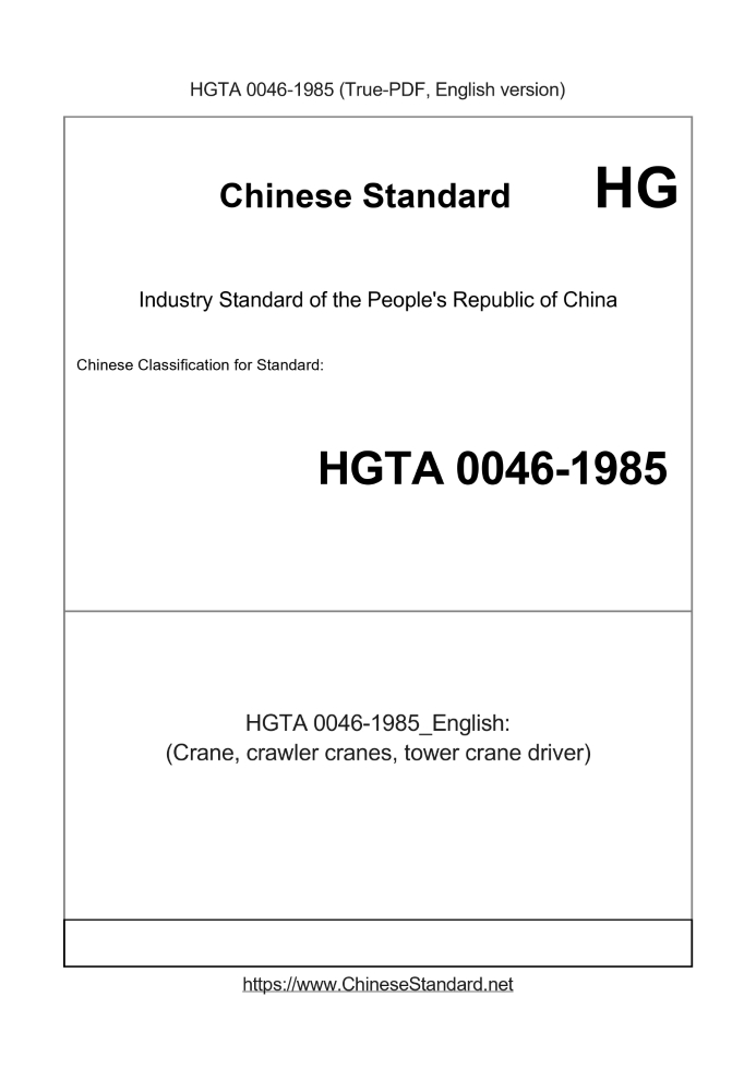 Basic dataStandard ID: HGTA 0046-1985 (HGTA0046-1985)Description (Translated English): (Crane, crawler cranes, tower crane driver) Sector / Industry: Chemical Industry Standard Regulation (derived from): Industry-Science (2010) No. 77 Tips & Frequently Asked Questions:Question 1: How long will the true-PDF of HGTA0046-1985_English be delivered?Answer: Upon your order, we will start to translate HGTA0046-1985_English as soon as possible, and keep you informed of the progress. The lead time is typically 1 ~ 3 working days. The lengthier the document the longer the lead time.Question 2: Can I share the purchased PDF of HGTA0046-1985_English with my colleagues?Answer: Yes. The purchased PDF of HGTA0046-1985_English will be deemed to be sold to your employer/organization who actually pays for it, including your colleagues and your employer's intranet.Question 3: Does the price include tax/VAT?Answer: Yes. Our tax invoice, downloaded/delivered in 9 seconds, includes all tax/VAT and complies with 100+ countries' tax regulations (tax exempted in 100+ countries) -- See Avoidance of Double Taxation Agreements (DTAs): List of DTAs signed between Singapore and 100+ countriesQuestion 4: Do you accept my currency other than USD?Answer: Yes. If you need your currency to be printed on the invoice, please write an email to Sales@ChineseStandard.net. In 2 working-hours, we will create a special link for you to pay in any currencies. Otherwise, follow the normal steps: Add to Cart -- Checkout -- Select your currency to pay. |