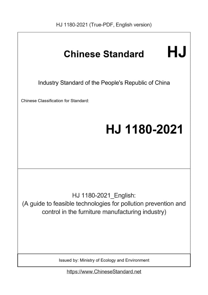 Delivery: <= 4 days. True-PDF full-copy in English will be manually translated and delivered via email. HJ 1180-2021: (A guide to feasible technologies for pollution prevention and control in the furniture manufacturing industry) Status: Valid