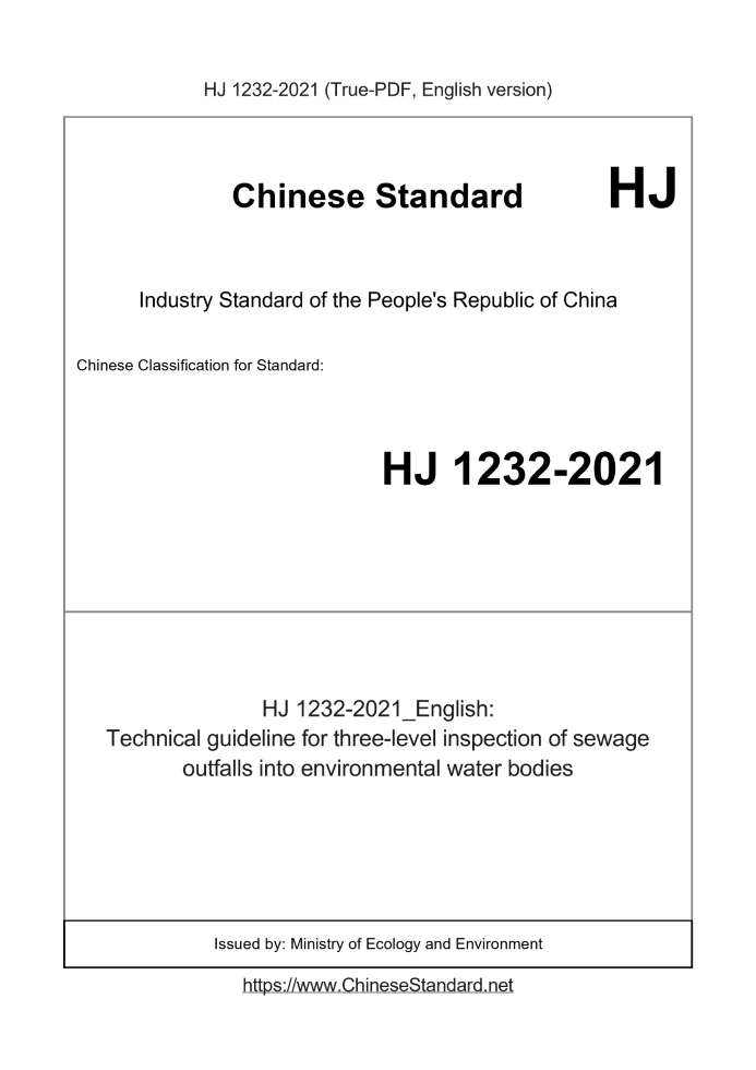 Delivery: <= 4 days. True-PDF full-copy in English will be manually translated and delivered via email. HJ 1232-2021: Technical guideline for three-level inspection of sewage outfalls into environmental water bodies Status: Valid