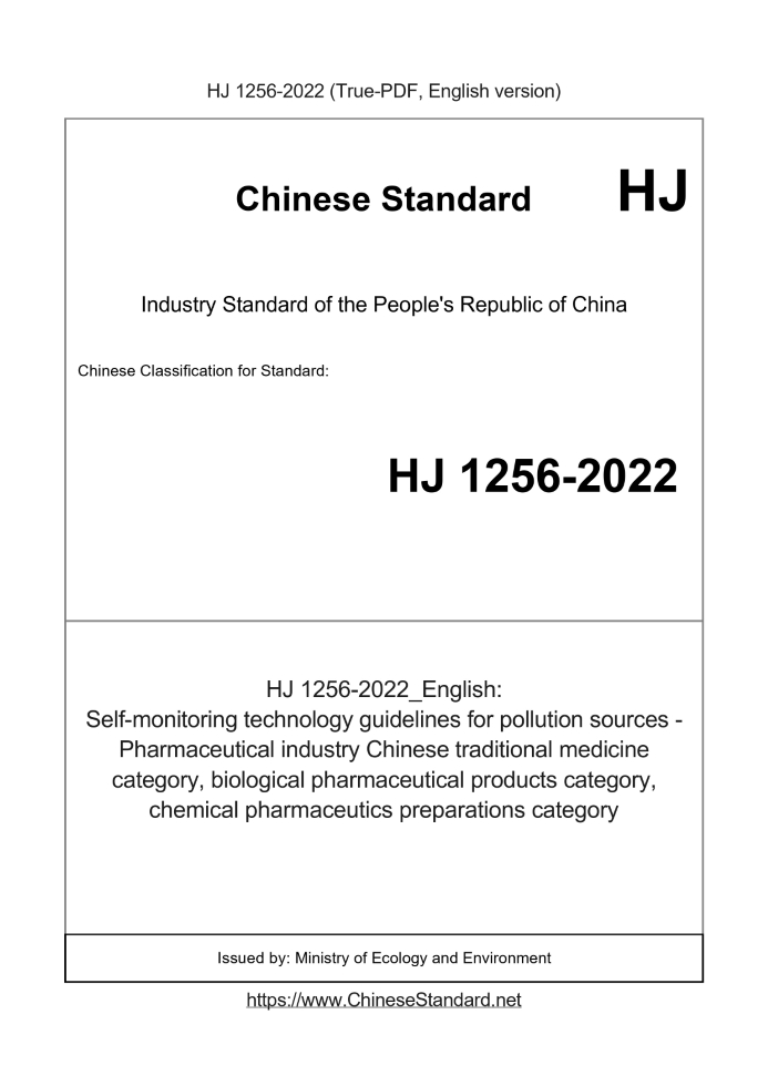 Delivery: <= 3 days. True-PDF full-copy in English will be manually translated and delivered via email. HJ 1256-2022: Self-monitoring technology guidelines for pollution sources - Pharmaceutical industry Chinese traditional medicine category, biological pharmaceutical products category, chemical pharmaceutics preparations category Status: Valid