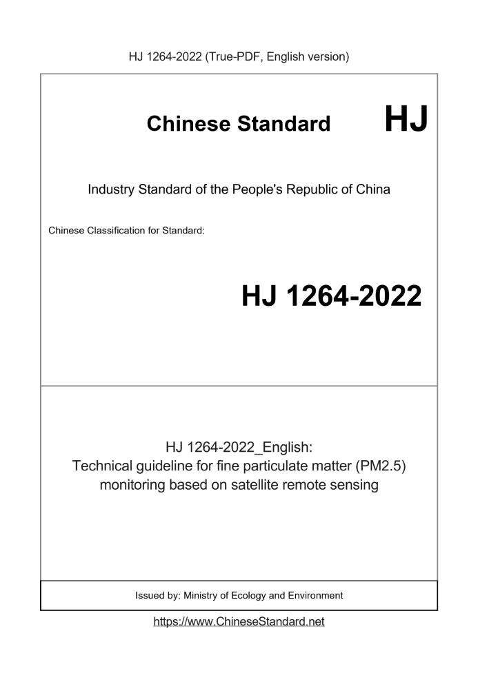Delivery: <= 3 days. True-PDF full-copy in English will be manually translated and delivered via email. HJ 1264-2022: Technical guideline for fine particulate matter (PM2.5) monitoring based on satellite remote sensing Status: Valid