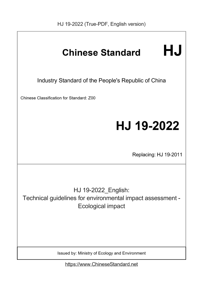 Delivery: <= 5 days. True-PDF full-copy in English will be manually translated and delivered via email. HJ 19-2022: Technical guidelines for environmental impact assessment - Ecological impact Status: Valid HJ 19: Historical versions