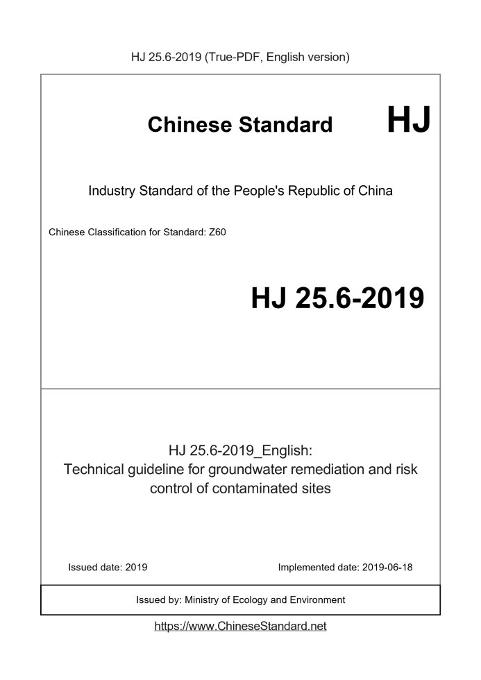 Delivery: <= 5 days. True-PDF full-copy in English will be manually translated and delivered via email. HJ 25.6-2019: Technical guideline for groundwater remediation and risk control of contaminated sites Status: Valid