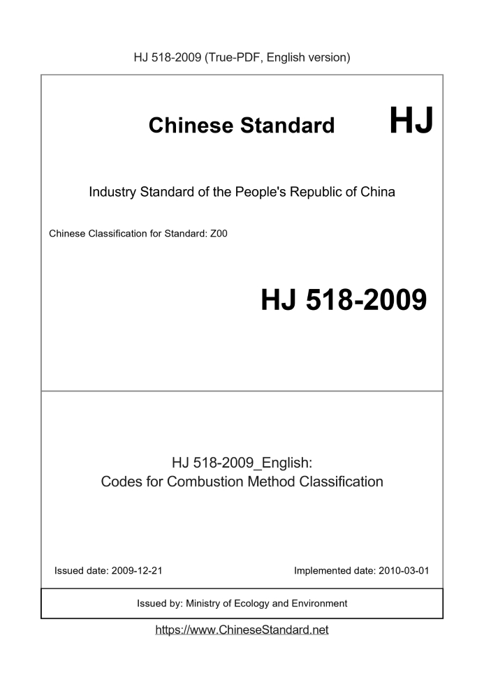 Delivery: <= 3 days. True-PDF full-copy in English will be manually translated and delivered via email. HJ 518-2009: Codes for Combustion Method Classification Status: Valid