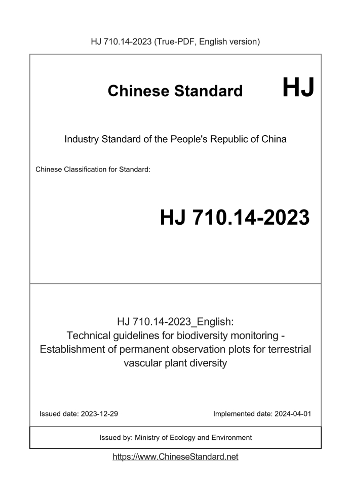 Delivery: <= 3 days. True-PDF full-copy in English will be manually translated and delivered via email. HJ 710.14-2023: Technical guidelines for biodiversity monitoring - Establishment of permanent observation plots for terrestrial vascular plant diversity Status: Valid