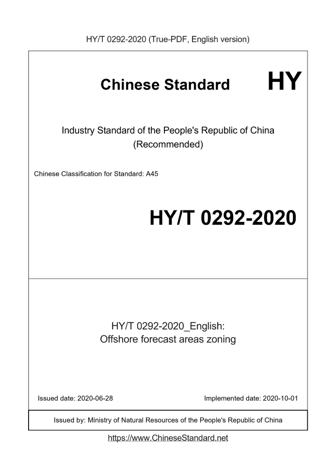Delivery: <= 3 days. True-PDF full-copy in English will be manually translated and delivered via email. HYT0292-2020: Offshore forecast areas zoning Status: Valid