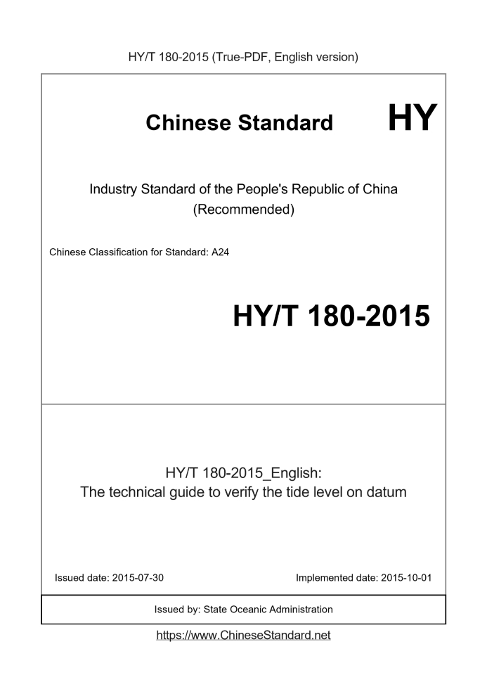 | HYT180-2015 English PDFUS$1249.00 · In stock Delivery: <= 8 days. True-PDF full-copy in English will be manually translated and delivered via email. HYT180-2015: The technical guide to verify the tide level on datum Status: Valid