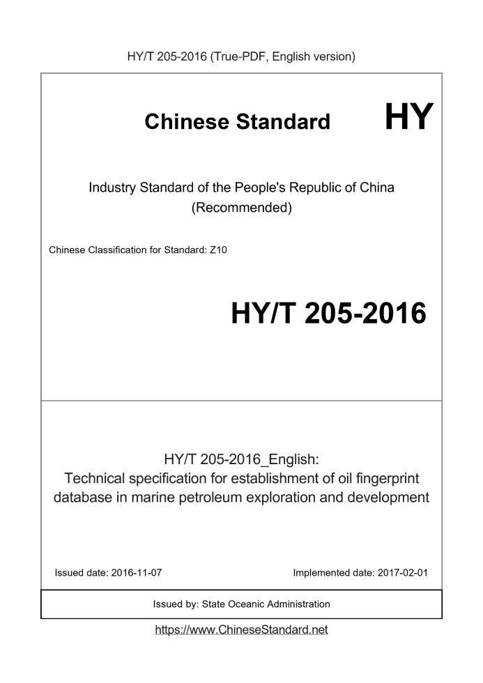 Delivery: <= 4 days. True-PDF full-copy in English will be manually translated and delivered via email. HYT205-2016: Technical specification for establishment of oil fingerprint database in marine petroleum exploration and development Status: Valid