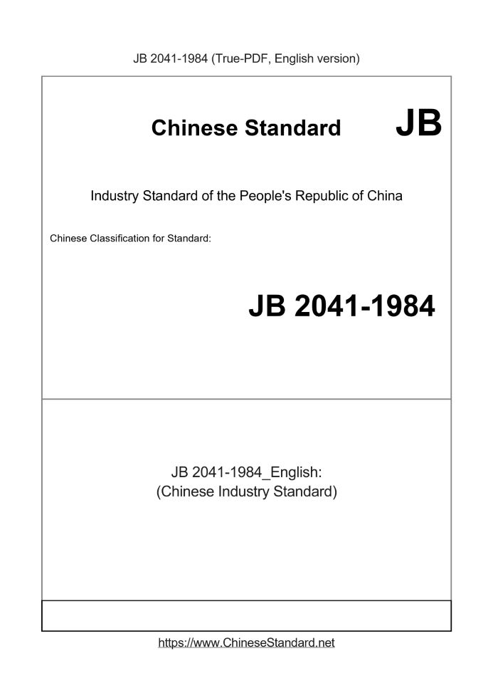 Basic dataStandard ID: JB 2041-1984 (JB2041-1984)Description (Translated English): (Chinese Industry Standard) Sector / Industry: Mechanical & Machinery Industry Standard Tips & Frequently Asked Questions:Question 1: How long will the true-PDF of JB 2041-1984_English be delivered?Answer: Upon your order, we will start to translate JB 2041-1984_English as soon as possible, and keep you informed of the progress. The lead time is typically 1 ~ 3 working days. The lengthier the document the longer the lead time.Question 2: Can I share the purchased PDF of JB 2041-1984_English with my colleagues?Answer: Yes. The purchased PDF of JB 2041-1984_English will be deemed to be sold to your employer/organization who actually pays for it, including your colleagues and your employer's intranet.Question 3: Does the price include tax/VAT?Answer: Yes. Our tax invoice, downloaded/delivered in 9 seconds, includes all tax/VAT and complies with 100+ countries' tax regulations (tax exempted in 100+ countries) -- See Avoidance of Double Taxation Agreements (DTAs): List of DTAs signed between Singapore and 100+ countriesQuestion 4: Do you accept my currency other than USD?Answer: Yes. If you need your currency to be printed on the invoice, please write an email to Sales@ChineseStandard.net. In 2 working-hours, we will create a special link for you to pay in any currencies. Otherwise, follow the normal steps: Add to Cart -- Checkout -- Select your currency to pay. |