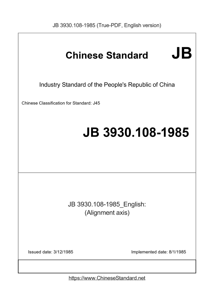 Delivery: <= 2 days. True-PDF full-copy in English will be manually translated and delivered via email. JB 3930.108-1985: (Alignment axis) Status: Obsolete