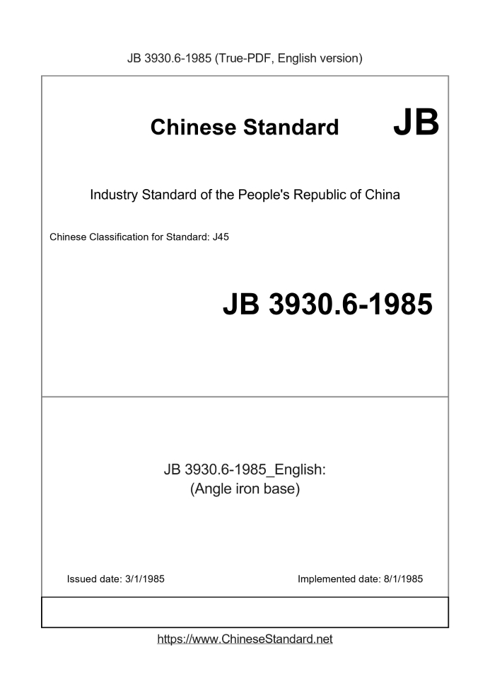 Delivery: <= 3 days. True-PDF full-copy in English will be manually translated and delivered via email. JB 3930.6-1985: (Angle iron base) Status: Obsolete