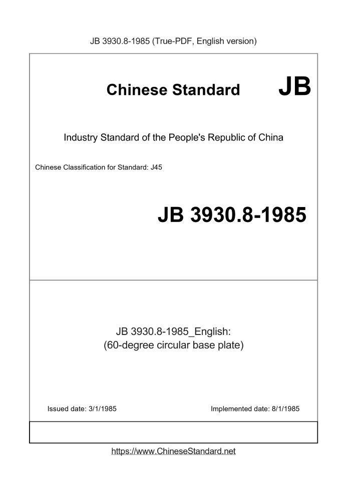 Delivery: <= 2 days. True-PDF full-copy in English will be manually translated and delivered via email. JB 3930.8-1985: (60-degree circular base plate) Status: Obsolete