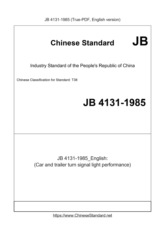 Basic dataStandard ID: JB 4131-1985 (JB4131-1985)Description (Translated English): (Car and trailer turn signal light performance) Sector / Industry: Mechanical & Machinery Industry Standard Classification of Chinese Standard: T38 Adopted Standard: ECE 6, NEQ Tips & Frequently Asked Questions:Question 1: How long will the true-PDF of JB 4131-1985_English be delivered?Answer: Upon your order, we will start to translate JB 4131-1985_English as soon as possible, and keep you informed of the progress. The lead time is typically 1 ~ 3 working days. The lengthier the document the longer the lead time.Question 2: Can I share the purchased PDF of JB 4131-1985_English with my colleagues?Answer: Yes. The purchased PDF of JB 4131-1985_English will be deemed to be sold to your employer/organization who actually pays for it, including your colleagues and your employer's intranet.Question 3: Does the price include tax/VAT?Answer: Yes. Our tax invoice, downloaded/delivered in 9 seconds, includes all tax/VAT and complies with 100+ countries' tax regulations (tax exempted in 100+ countries) -- See Avoidance of Double Taxation Agreements (DTAs): List of DTAs signed between Singapore and 100+ countriesQuestion 4: Do you accept my currency other than USD?Answer: Yes. If you need your currency to be printed on the invoice, please write an email to Sales@ChineseStandard.net. In 2 working-hours, we will create a special link for you to pay in any currencies. Otherwise, follow the normal steps: Add to Cart -- Checkout -- Select your currency to pay. |