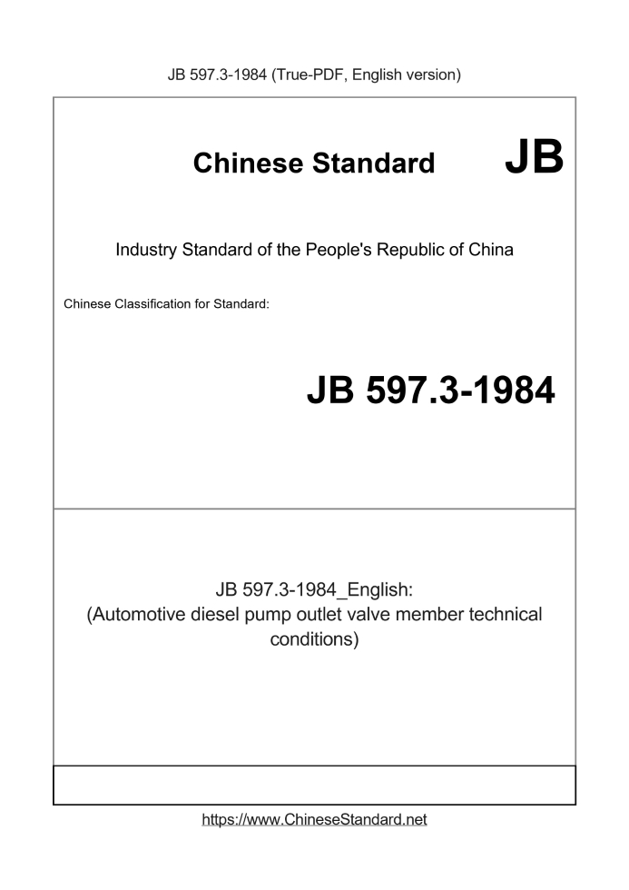 Basic dataStandard ID: JB 597.3-1984 (JB597.3-1984)Description (Translated English): (Automotive diesel pump outlet valve member technical conditions) Sector / Industry: Mechanical & Machinery Industry Standard Tips & Frequently Asked Questions:Question 1: How long will the true-PDF of JB 597.3-1984_English be delivered?Answer: Upon your order, we will start to translate JB 597.3-1984_English as soon as possible, and keep you informed of the progress. The lead time is typically 1 ~ 3 working days. The lengthier the document the longer the lead time.Question 2: Can I share the purchased PDF of JB 597.3-1984_English with my colleagues?Answer: Yes. The purchased PDF of JB 597.3-1984_English will be deemed to be sold to your employer/organization who actually pays for it, including your colleagues and your employer's intranet.Question 3: Does the price include tax/VAT?Answer: Yes. Our tax invoice, downloaded/delivered in 9 seconds, includes all tax/VAT and complies with 100+ countries' tax regulations (tax exempted in 100+ countries) -- See Avoidance of Double Taxation Agreements (DTAs): List of DTAs signed between Singapore and 100+ countriesQuestion 4: Do you accept my currency other than USD?Answer: Yes. If you need your currency to be printed on the invoice, please write an email to Sales@ChineseStandard.net. In 2 working-hours, we will create a special link for you to pay in any currencies. Otherwise, follow the normal steps: Add to Cart -- Checkout -- Select your currency to pay. |