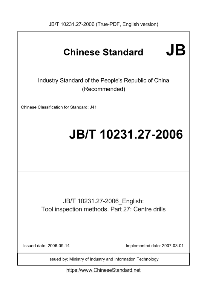 Delivery: <= 3 days. True-PDF full-copy in English will be manually translated and delivered via email. JB/T 10231.27-2006: Tool inspection methods. Part 27: Centre drills Status: Valid