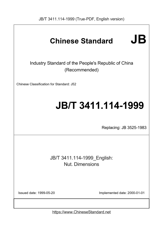 Delivery: <= 2 days. True-PDF full-copy in English will be manually translated and delivered via email. JB/T 3411.114-1999: Nut. Dimensions