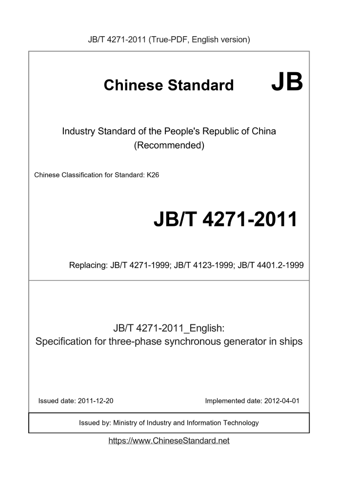 JB/T 4271-2011709 Add to Cart 5 days Specification for three-phase synchronous generator in ships Valid