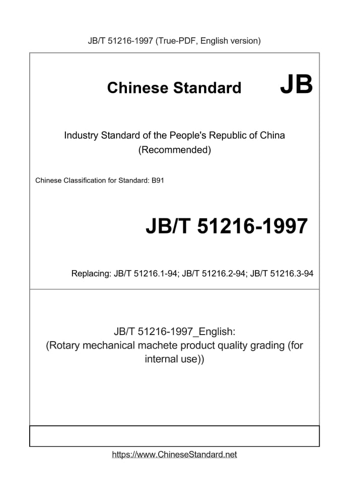 | JB/T 51216-1997 English PDFUS$319.00 ยท In stock Delivery: <= 3 days. True-PDF full-copy in English will be manually translated and delivered via email. JB/T 51216-1997: (Rotary mechanical machete product quality grading (for internal use)) Status: Obsolete