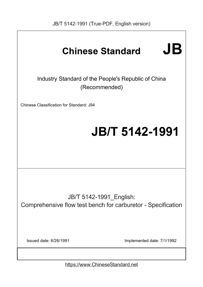 | JB/T 5142-1991 English PDFUS$219.00 ยท In stock Delivery: <= 3 days. True-PDF full-copy in English will be manually translated and delivered via email. JB/T 5142-1991: Comprehensive flow test bench for carburetor - Specification