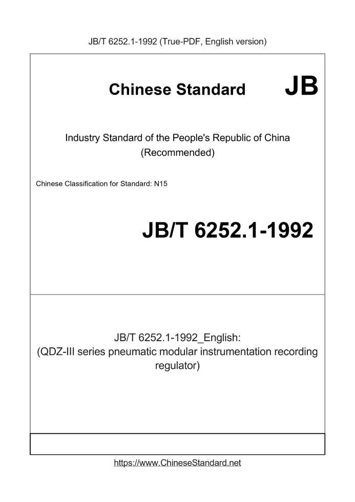 Basic dataStandard ID: JB/T 6252.1-1992 (JB/T6252.1-1992)Description (Translated English): (QDZ-III series pneumatic modular instrumentation recording regulator) Sector / Industry: Mechanical & Machinery Industry Standard (Recommended) Classification of Chinese Standard: N15 Adopted Standard: IEC 546, NEQ Regulation (derived from): Reform-Development-Announcement (2005/16) Tips & Frequently Asked Questions:Question 1: How long will the true-PDF of JB/T 6252.1-1992_English be delivered?Answer: Upon your order, we will start to translate JB/T 6252.1-1992_English as soon as possible, and keep you informed of the progress. The lead time is typically 1 ~ 3 working days. The lengthier the document the longer the lead time.Question 2: Can I share the purchased PDF of JB/T 6252.1-1992_English with my colleagues?Answer: Yes. The purchased PDF of JB/T 6252.1-1992_English will be deemed to be sold to your employer/organization who actually pays for it, including your colleagues and your employer's intranet.Question 3: Does the price include tax/VAT?Answer: Yes. Our tax invoice, downloaded/delivered in 9 seconds, includes all tax/VAT and complies with 100+ countries' tax regulations (tax exempted in 100+ countries) -- See Avoidance of Double Taxation Agreements (DTAs): List of DTAs signed between Singapore and 100+ countriesQuestion 4: Do you accept my currency other than USD?Answer: Yes. If you need your currency to be printed on the invoice, please write an email to Sales@ChineseStandard.net. In 2 working-hours, we will create a special link for you to pay in any currencies. Otherwise, follow the normal steps: Add to Cart -- Checkout -- Select your currency to pay. |