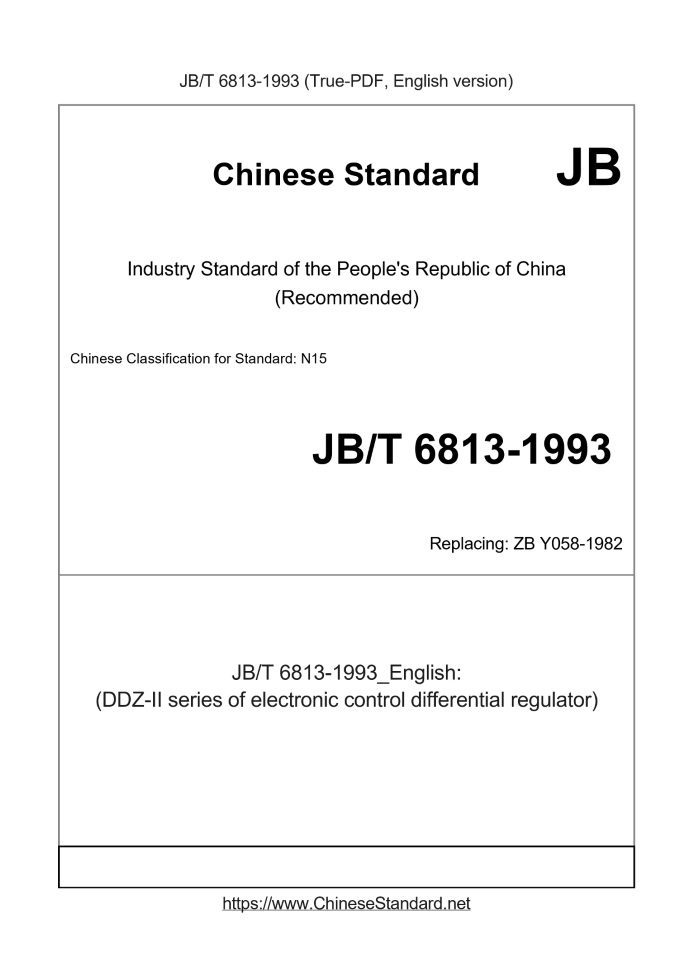 Delivery: <= 3 days. True-PDF full-copy in English will be manually translated and delivered via email. JB/T 6813-1993: (DDZ-II series of electronic control differential regulator) Status: Obsolete