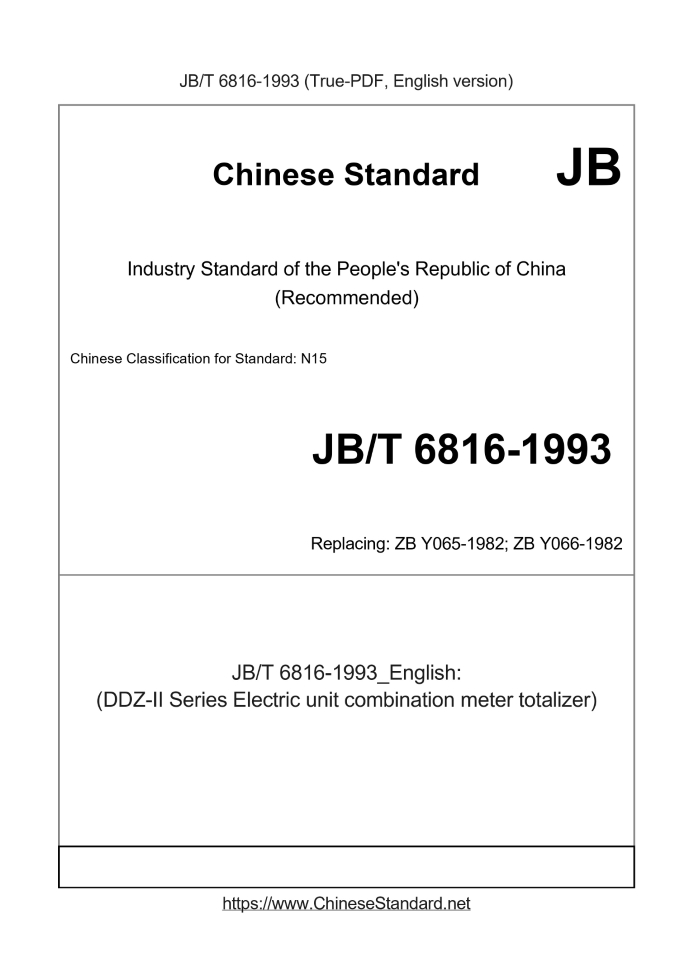 Delivery: <= 3 days. True-PDF full-copy in English will be manually translated and delivered via email. JB/T 6816-1993: (DDZ-II Series Electric unit combination meter totalizer) Status: Obsolete