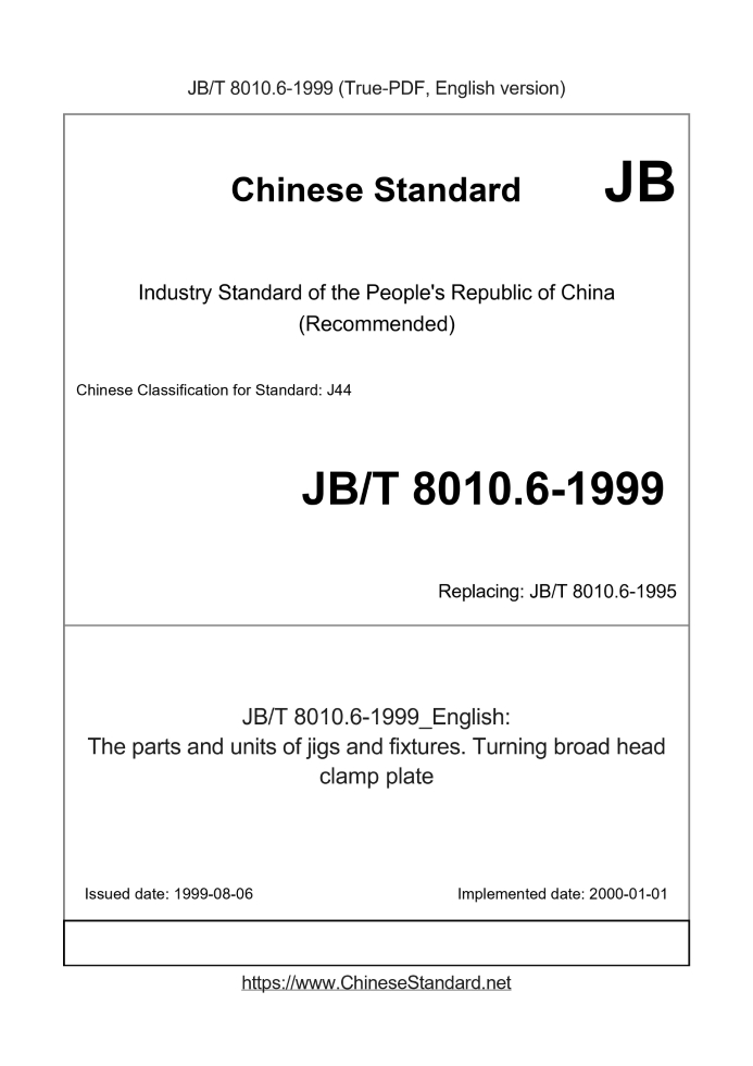 JB/T 8010.6-1999119 Add to Cart 2 days The parts and units of jigs and fixtures. Turning broad head clamp plate