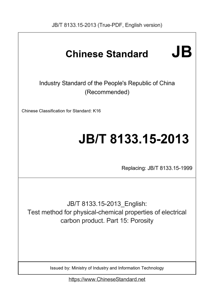 JB/T 8133.15-2013209 Add to Cart 3 days Test method for physical-chemical properties of electrical carbon product. Part 15: Porosity Valid