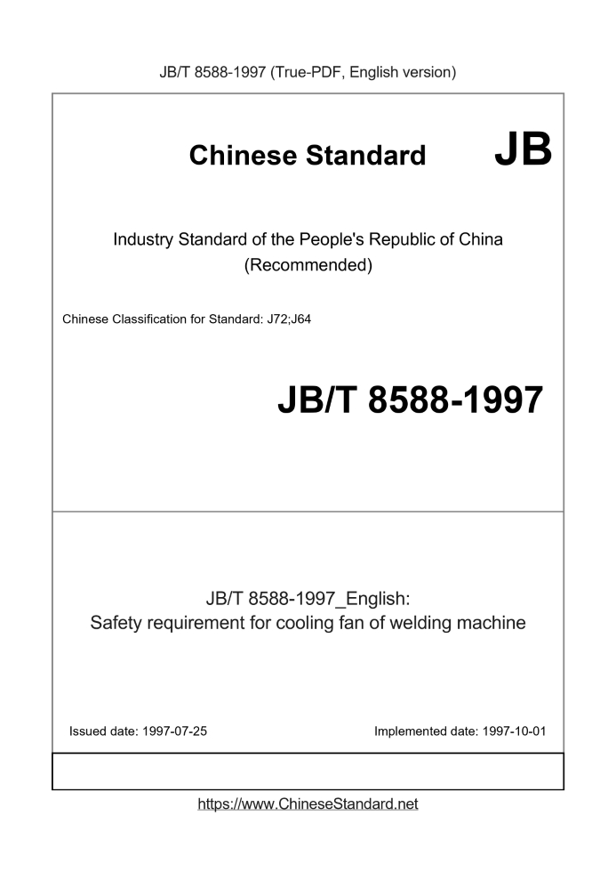 US$519.00 · In stock · Download in 9 secondsJB/T 8588-1997: Safety requirement for cooling fan of welding machine