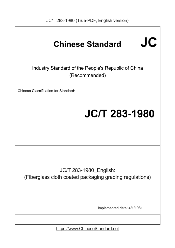 Basic dataStandard ID: JC/T 283-1980 (JC/T283-1980)Description (Translated English): (Fiberglass cloth coated packaging grading regulations) Sector / Industry: Building Materials Industry Standard (Recommended) Date of Implementation: 4/1/1981 Tips & Frequently Asked Questions:Question 1: How long will the true-PDF of JC/T 283-1980_English be delivered?Answer: Upon your order, we will start to translate JC/T 283-1980_English as soon as possible, and keep you informed of the progress. The lead time is typically 1 ~ 3 working days. The lengthier the document the longer the lead time.Question 2: Can I share the purchased PDF of JC/T 283-1980_English with my colleagues?Answer: Yes. The purchased PDF of JC/T 283-1980_English will be deemed to be sold to your employer/organization who actually pays for it, including your colleagues and your employer's intranet.Question 3: Does the price include tax/VAT?Answer: Yes. Our tax invoice, downloaded/delivered in 9 seconds, includes all tax/VAT and complies with 100+ countries' tax regulations (tax exempted in 100+ countries) -- See Avoidance of Double Taxation Agreements (DTAs): List of DTAs signed between Singapore and 100+ countriesQuestion 4: Do you accept my currency other than USD?Answer: Yes. If you need your currency to be printed on the invoice, please write an email to Sales@ChineseStandard.net. In 2 working-hours, we will create a special link for you to pay in any currencies. Otherwise, follow the normal steps: Add to Cart -- Checkout -- Select your currency to pay. |
