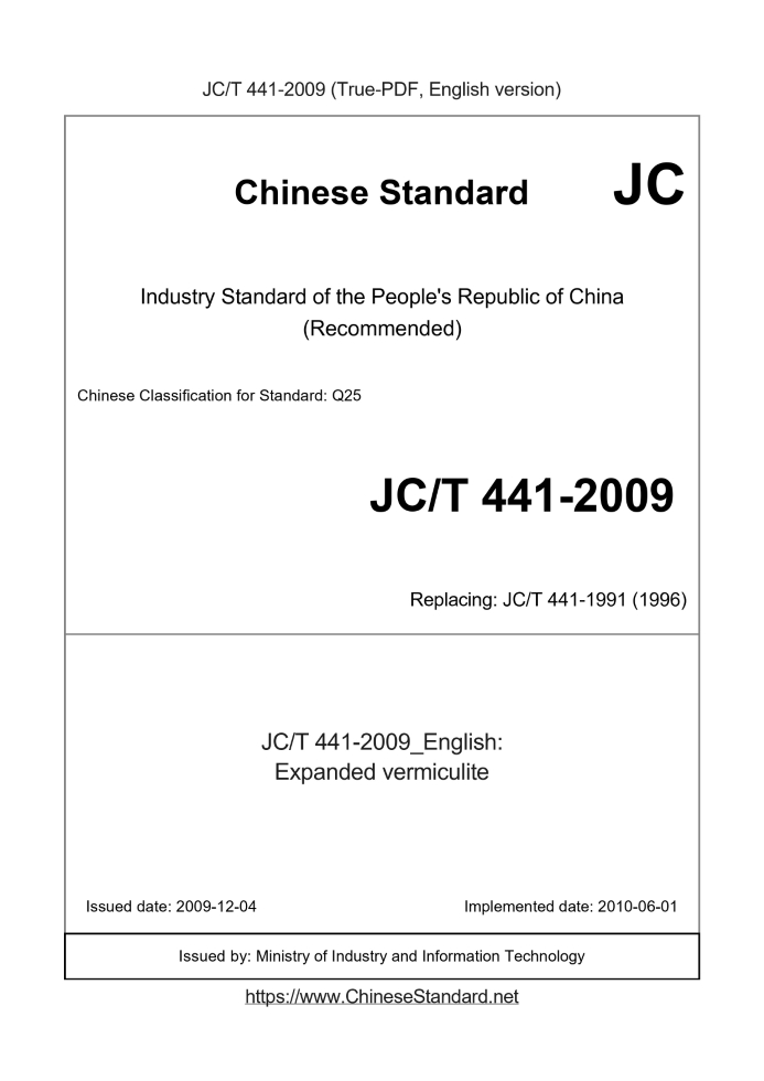 JC/T 441-2009: Expanded vermiculite