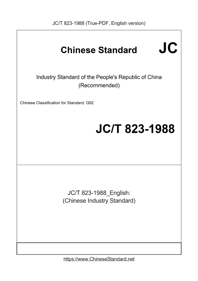 Basic dataStandard ID: JC/T 823-1988 (JC/T823-1988)Description (Translated English): (Chinese Industry Standard) Sector / Industry: Building Materials Industry Standard (Recommended) Classification of Chinese Standard: Q92 Regulation (derived from): Industry-Science (2010) No.77 Tips & Frequently Asked Questions:Question 1: How long will the true-PDF of JC/T 823-1988_English be delivered?Answer: Upon your order, we will start to translate JC/T 823-1988_English as soon as possible, and keep you informed of the progress. The lead time is typically 1 ~ 3 working days. The lengthier the document the longer the lead time.Question 2: Can I share the purchased PDF of JC/T 823-1988_English with my colleagues?Answer: Yes. The purchased PDF of JC/T 823-1988_English will be deemed to be sold to your employer/organization who actually pays for it, including your colleagues and your employer's intranet.Question 3: Does the price include tax/VAT?Answer: Yes. Our tax invoice, downloaded/delivered in 9 seconds, includes all tax/VAT and complies with 100+ countries' tax regulations (tax exempted in 100+ countries) -- See Avoidance of Double Taxation Agreements (DTAs): List of DTAs signed between Singapore and 100+ countriesQuestion 4: Do you accept my currency other than USD?Answer: Yes. If you need your currency to be printed on the invoice, please write an email to Sales@ChineseStandard.net. In 2 working-hours, we will create a special link for you to pay in any currencies. Otherwise, follow the normal steps: Add to Cart -- Checkout -- Select your currency to pay. |