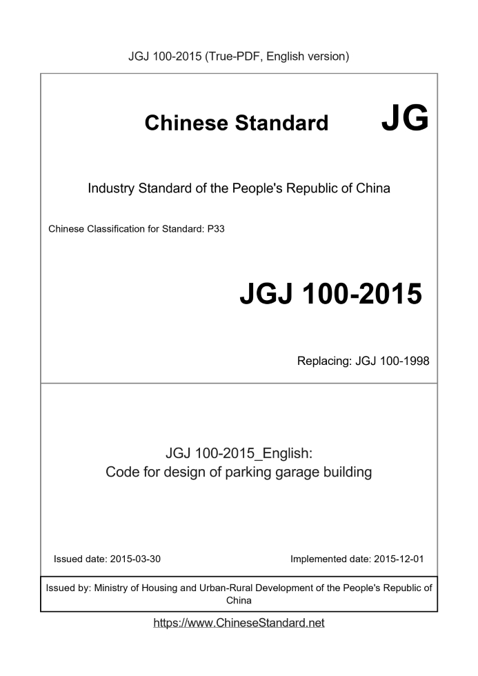 Delivery: <= 13 days. True-PDF full-copy in English will be manually translated and delivered via email. JGJ100-2015: Code for design of parking garage building Status: Valid JGJ100: Historical versions