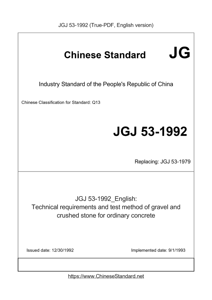 | JGJ 53-1992 | English | RFQ | ASK | 11 days [Need to translate] | Technical requirements and test method of gravel and crushed stone for ordinary concrete |