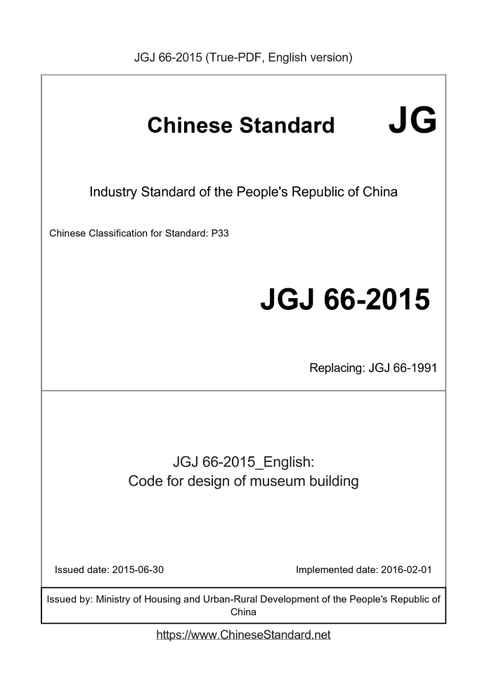 Delivery: <= 9 days. True-PDF full-copy in English will be manually translated and delivered via email. JGJ66-2015: Code for design of museum building Status: Valid JGJ66: Historical versions