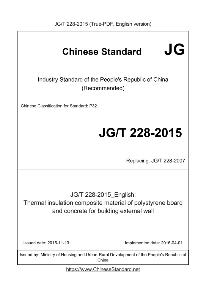 Delivery: <= 6 days. True-PDF full-copy in English will be manually translated and delivered via email. JG/T 228-2015: Thermal insulation composite material of polystyrene board and concrete for building external wall Status: Valid JG/T 228: Historical versions