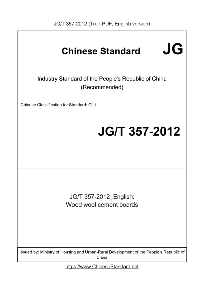 Delivery: <= 3 days. True-PDF full-copy in English will be manually translated and delivered via email. JG/T 357-2012: Wood wool cement boards Status: Valid