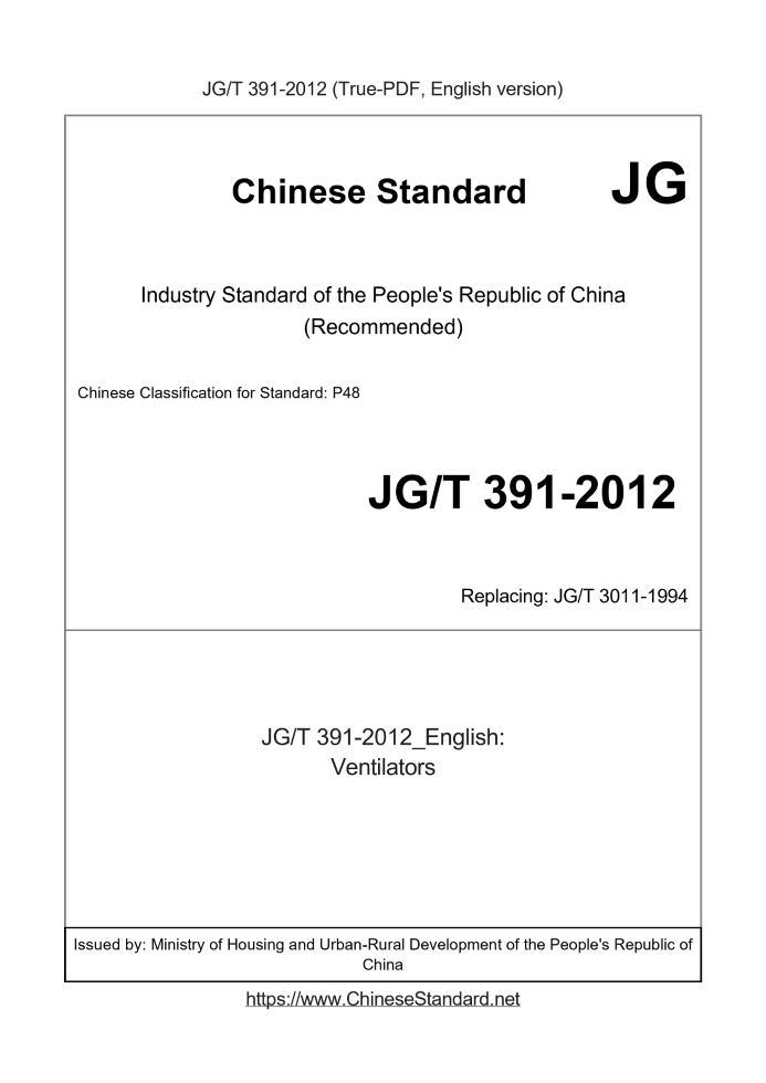 Delivery: <= 3 days. True-PDF full-copy in English will be manually translated and delivered via email. JG/T 391-2012: Ventilators Status: Valid