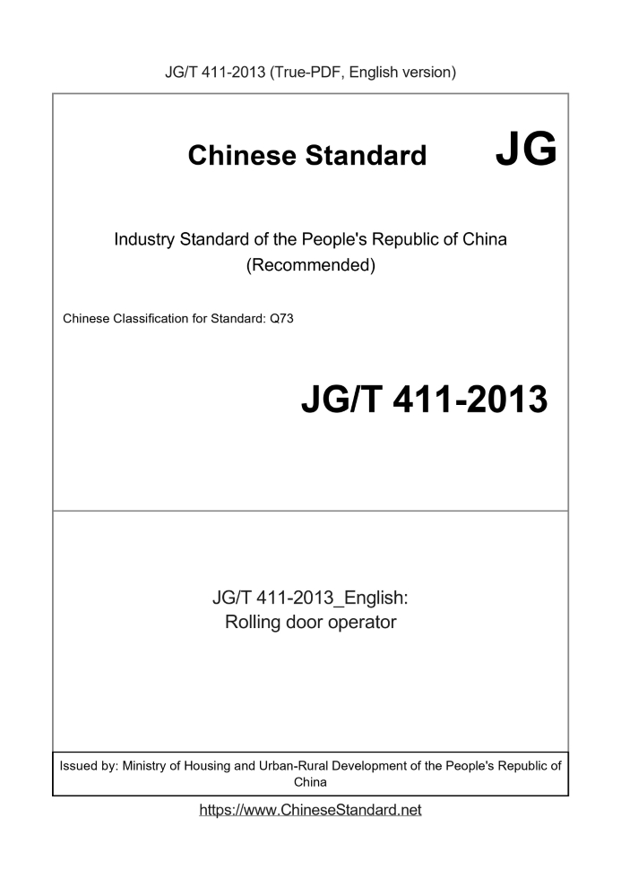 Delivery: <= 5 days. True-PDF full-copy in English will be manually translated and delivered via email. JG/T 411-2013: Rolling door operator Status: Valid