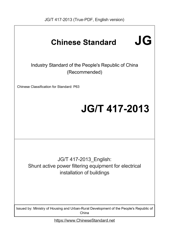 Delivery: <= 4 days. True-PDF full-copy in English will be manually translated and delivered via email. JG/T 417-2013: Shunt active power filtering equipment for electrical installation of buildings Status: Valid