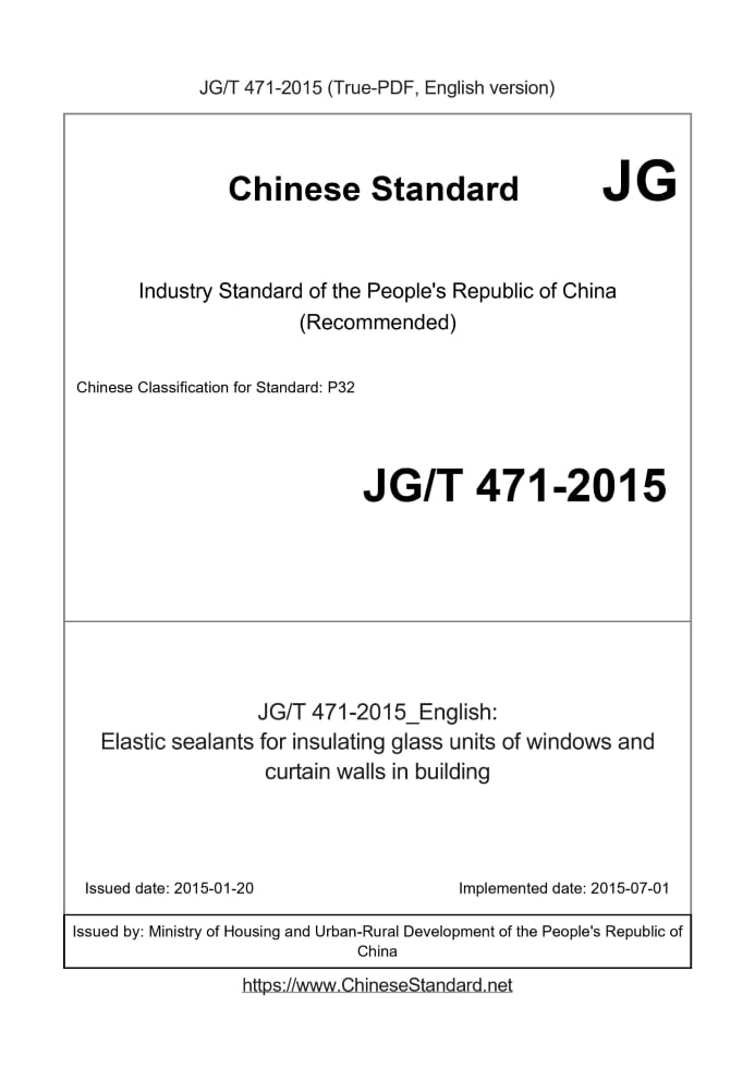 Delivery: <= 4 days. True-PDF full-copy in English will be manually translated and delivered via email. JG/T 471-2015: Elastic sealants for insulating glass units of windows and curtain walls in building Status: Valid