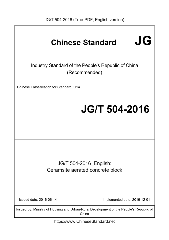 US$279.00 · In stock · Download in 9 secondsJG/T 504-2016: Ceramsite aerated concrete block