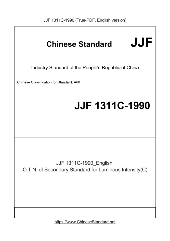 Delivery: <= 3 days. True-PDF full-copy in English will be manually translated and delivered via email. JJF1311C-1990: O.T.N. of Secondary Standard for Luminous Intensity(C) Status: Obsolete
