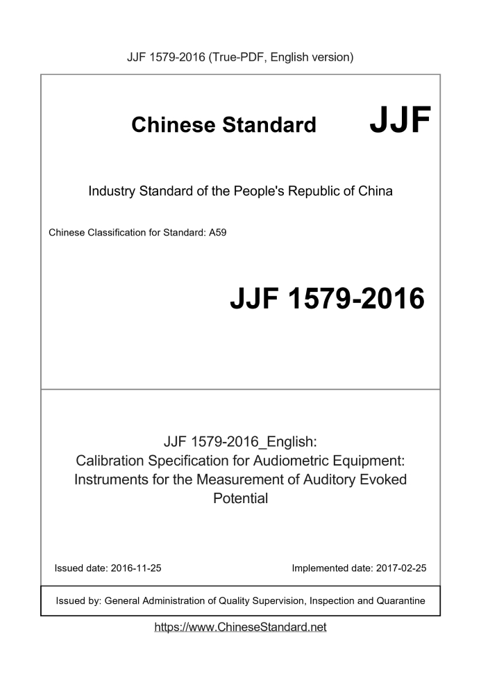 Delivery: <= 4 days. True-PDF full-copy in English will be manually translated and delivered via email. JJF 1579-2016: Calibration Specification for Audiometric Equipment: Instruments for the Measurement of Auditory Evoked Potential Status: Valid
