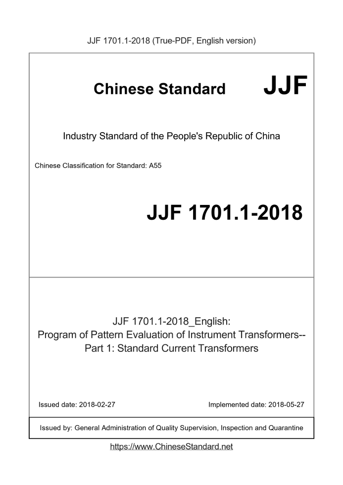 Delivery: <= 5 days. True-PDF full-copy in English will be manually translated and delivered via email. JJF 1701.1-2018: Program of Pattern Evaluation of Instrument Transformers--Part 1: Standard Current Transformers Status: Valid