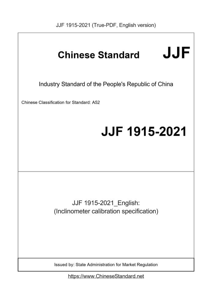 Delivery: <= 4 days. True-PDF full-copy in English will be manually translated and delivered via email. JJF 1915-2021: (Inclinometer calibration specification) Status: Valid