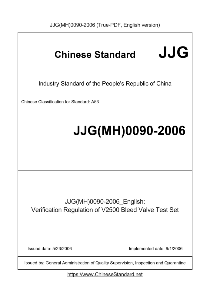 Delivery: <= 7 days. True-PDF full-copy in English will be manually translated and delivered via email. JJG(MH)0090-2006: Verification Regulation of V2500 Bleed Valve Test Set